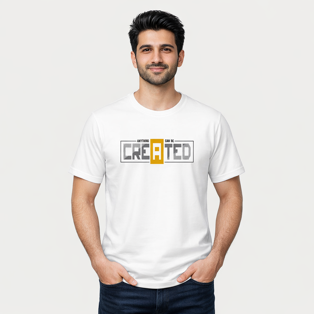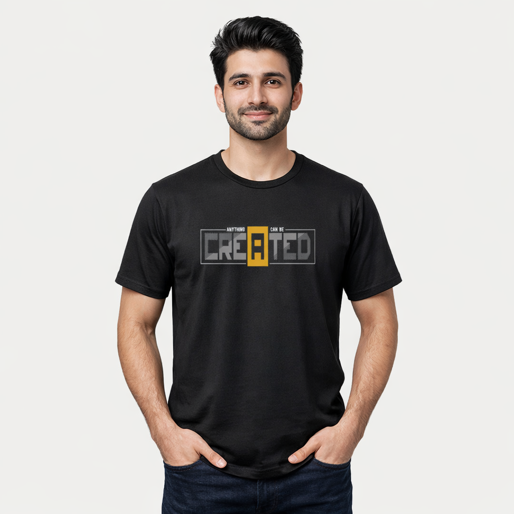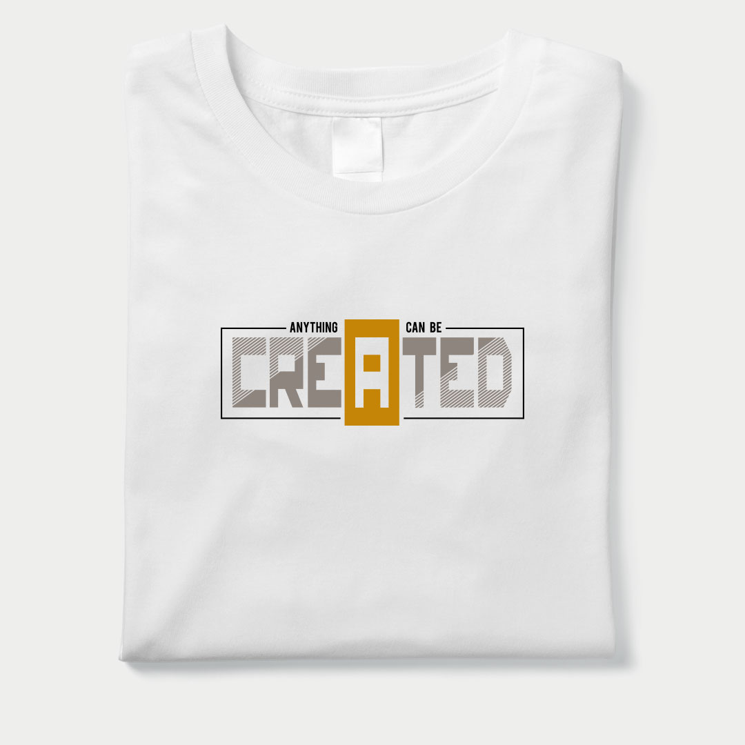 Unleash your creativity with the Anything Can Be Created Graphic T-Shirt. Featuring bold modern typography with a standout design detail, this motivational streetwear tee is perfect for dreamers and creators. Made from premium cotton jersey fabric for everyday comfort.