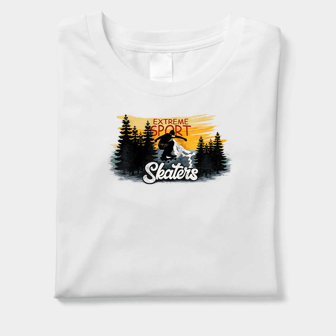 Unleash your adventurous spirit with the Extreme Sport Skaters Graphic T-Shirt. Featuring a bold skater silhouette with dynamic sunset and forest backdrop, this extreme sports streetwear tee is perfect for skating enthusiasts and thrill seekers. Made from premium cotton jersey fabric for all-day comfort.