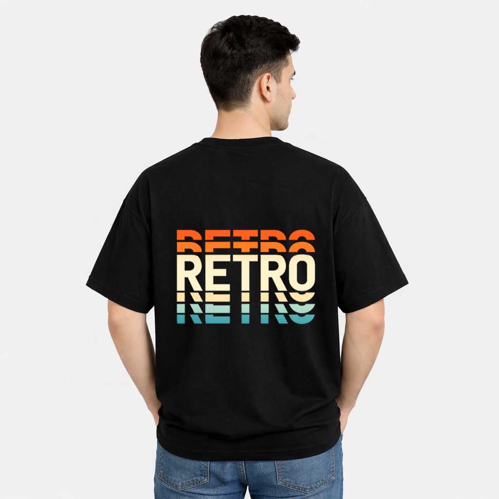 Retro Gradient Typography Back Print T-Shirt for Men