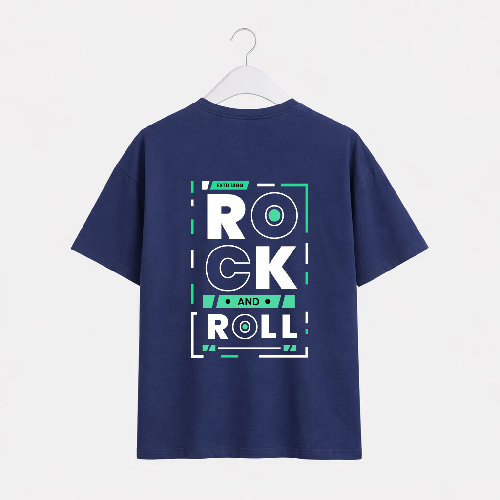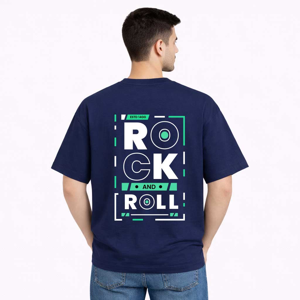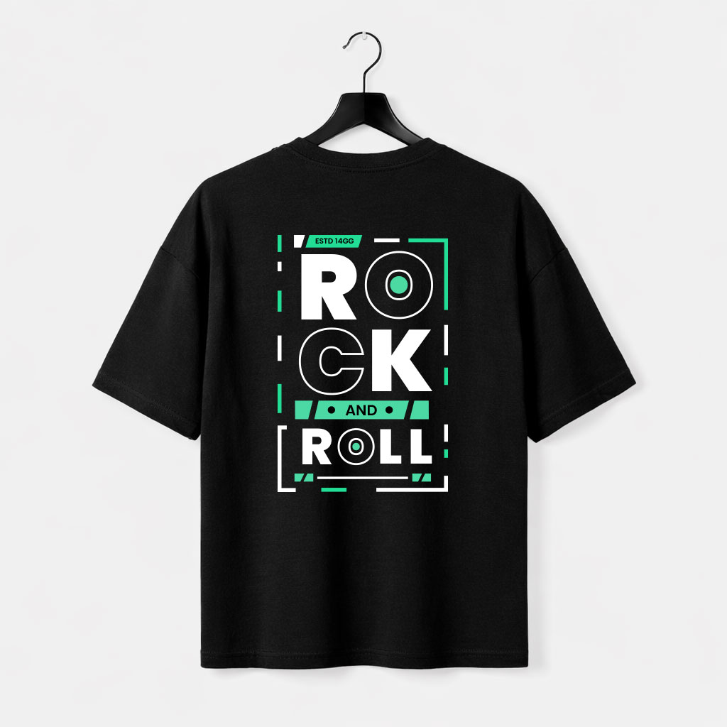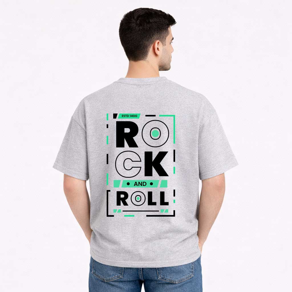 Rock and Roll Typography Back Print T-Shirt for Men