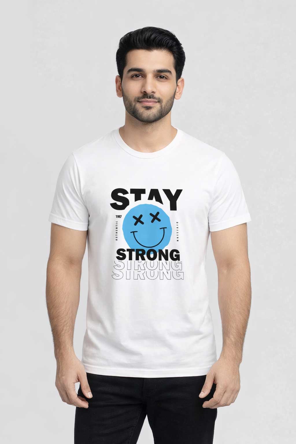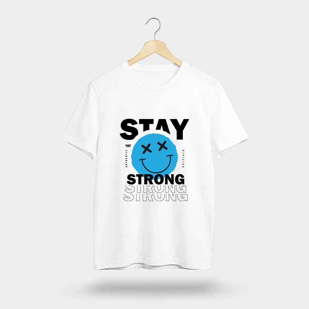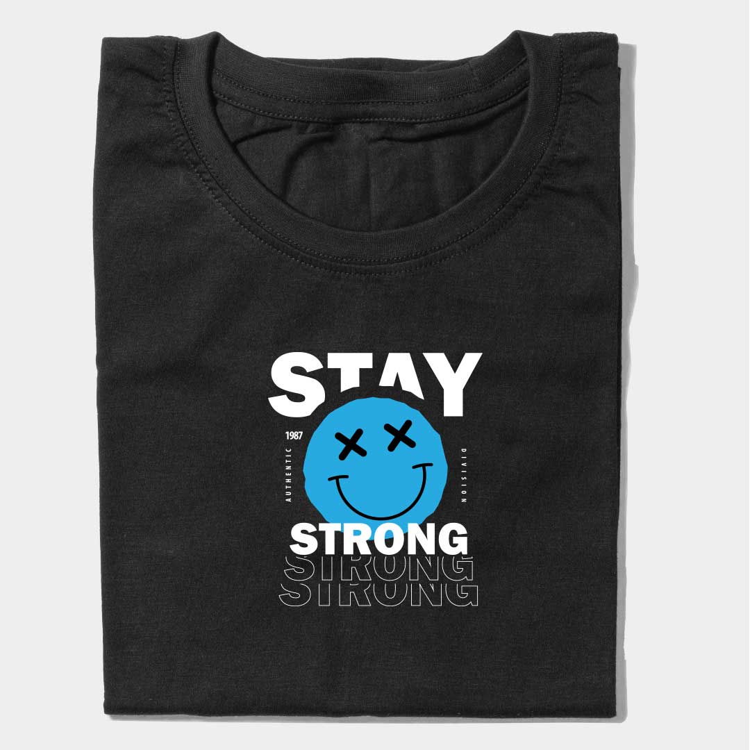 Stay Strong Smiley Graphic T-Shirt – Motivational Streetwear Tee